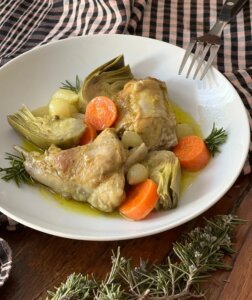 Conejo-en-escabeche-curry-alcachofas-cebollitas
