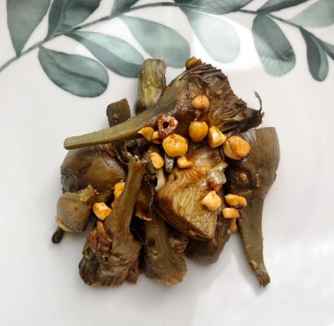 Receta para preparar unas alcachofas con anacardos y pimentón de la Vera