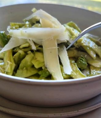 Receta para preparar una ensalada de alcachofas y aguacate con queso parmesano.